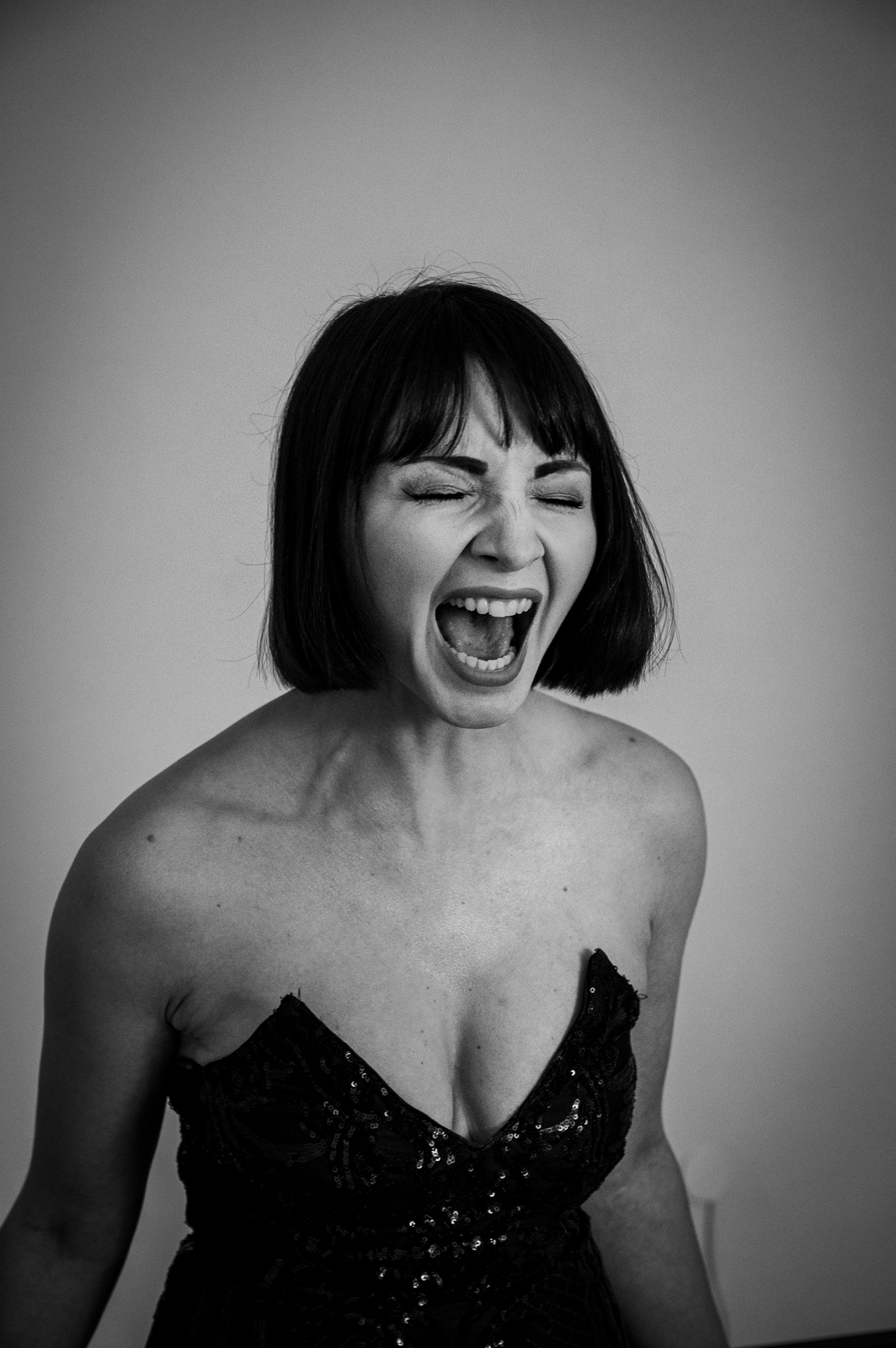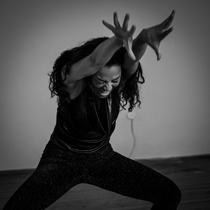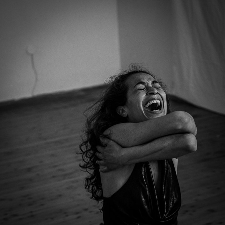 The Brasilian dancer Carla Weissmann, was showing dancing emotions in front of a Camera.